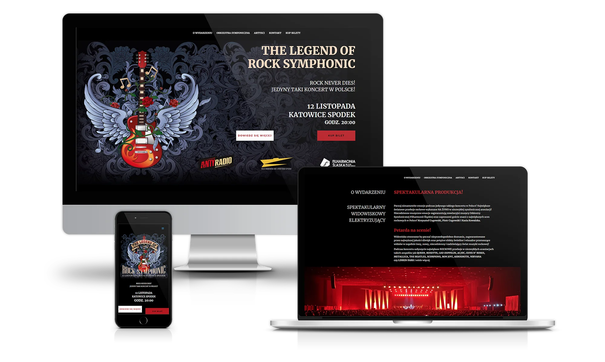 Strona internetowa koncertu muzycznego Legend Rocka w Katowickim Spodku.