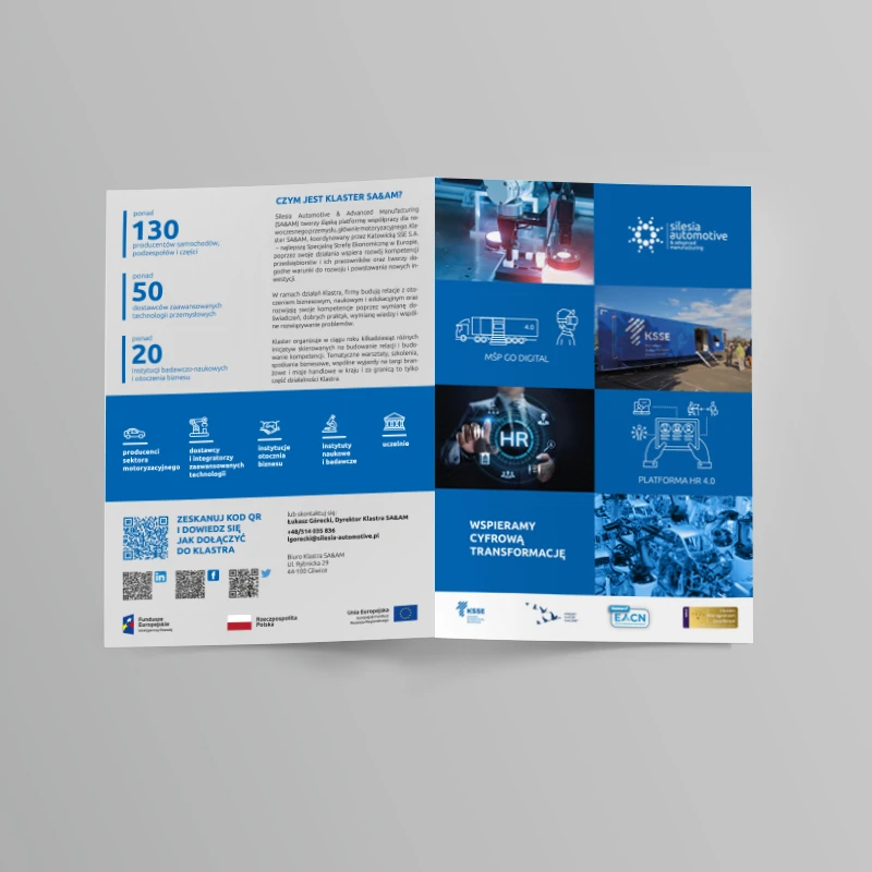 Silesia Automotive & Advanced Manufacturing PROJEKTOWANIE Retouch logo oraz projekt kompleksowym materiałów reklamowych dla klastra przedsiębiorców. ← WIROMAT Telvis →