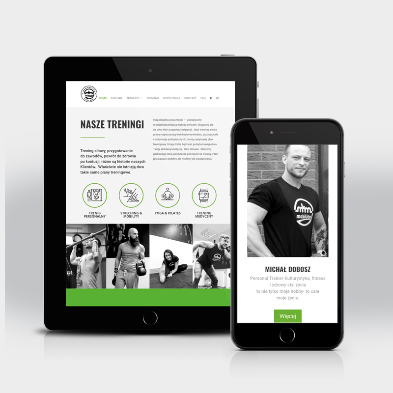 Projekt strony internetowej studia treningów personalnych wymagał od nas opracowania wartościowego kontentu. Najważniejsze było zachowanie tożsamości firmy, pasji i pozytywnej motywacji, która charakteryzuje właścicieli MKM Mobility.