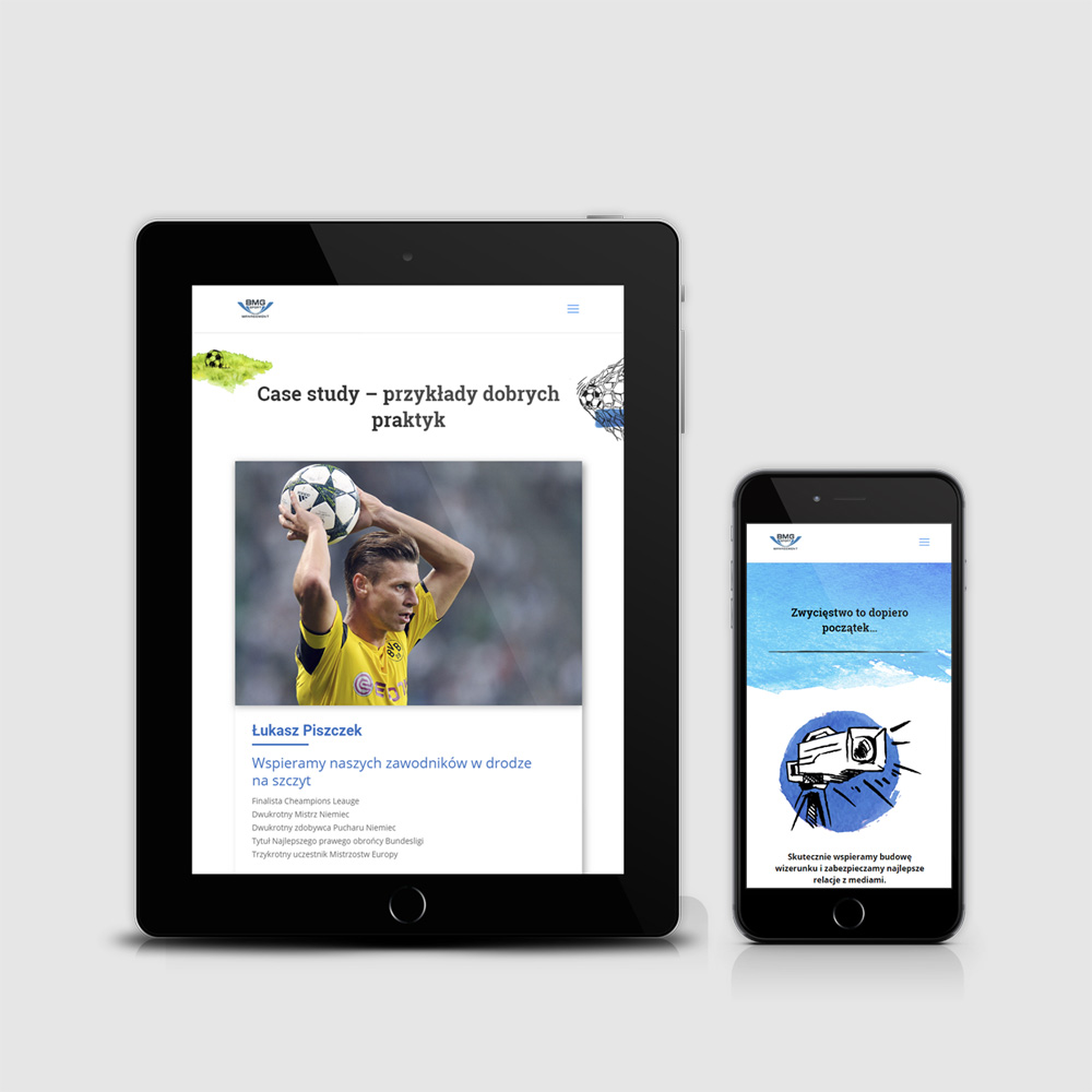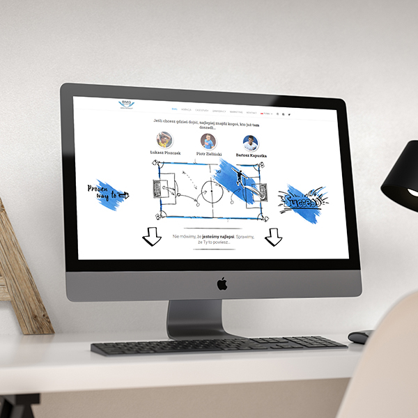Projekt strony internetowej sportowej agencji menadżerskiej wymagał od nas stworzenia autorskich grafik. Powstała intrygująca historia kierowana do piłkarzy u progu kariery. Tworzenie stron internetowych zawsze osadzone jest w kontekście grupy docelowej i wyznaczonego przez klienta celu biznesowego.
