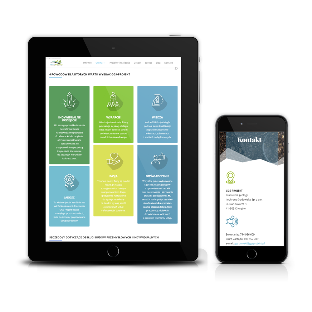 Projekt strony pracowni geologii i ochrony środowiska. Najważniejsze wyzwanie jakie niosło tworzenie strony internetowej GGS Projekt, to dokładne odtworzenie struktury i budowy strony w zupełnie nowej oprawie graficznej. Istniejąca strona była bardzo dobrze wypozycjonowana i zachowanie jej rankingu było kluczowe dla klienta.